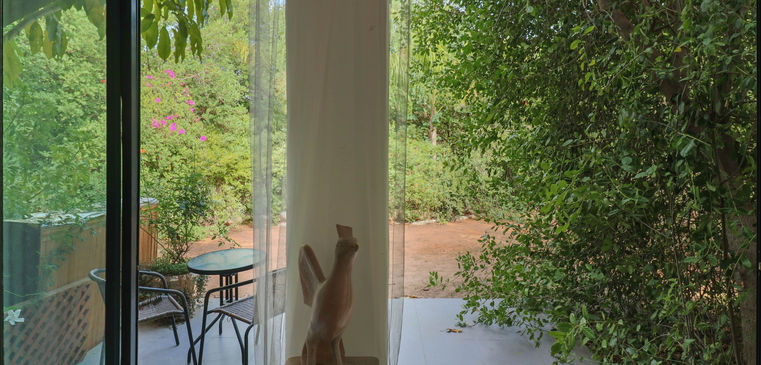 סלון גדול ונעים פונה אל הגינה מכל כיוון.